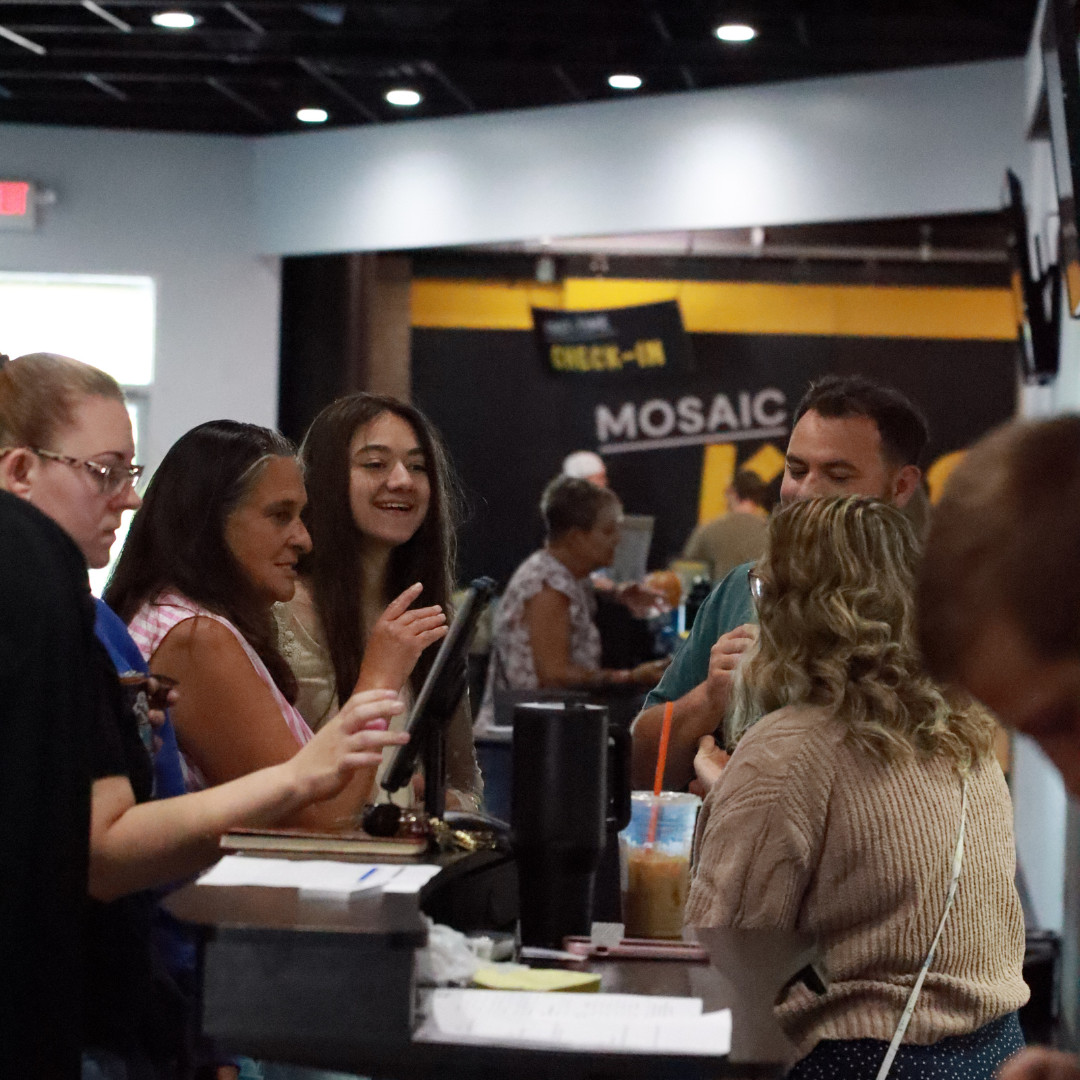 If your kids are newborn-4th grade, they can check into Mosaic Kids inside the entrance off the back parking lot. Mosaic Youth is for all students 5th-12th grade. Mosaic Youth can check in at the Youth check in desk. They will then go with their leaders into the main worship space and then transitions to their group locations.